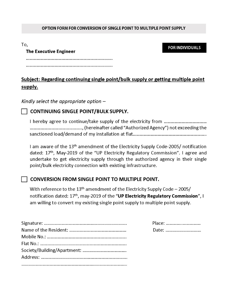 Multiplex, marriage halls and centralized air conditioned Multi Story Buildings shall continue to remain on Single Point and accordingly kept outside the ambid of 13th Amendment. Initially the provision of 13th Amendment shall be applied on residential Multi Storied buildings. After completion of conversion in all residential Multi Story Buildings, conversion work in commercial buildings will be taken up barring multiplex, marriage halls and centralized air conditioned, commercial Multi Story Buildings.