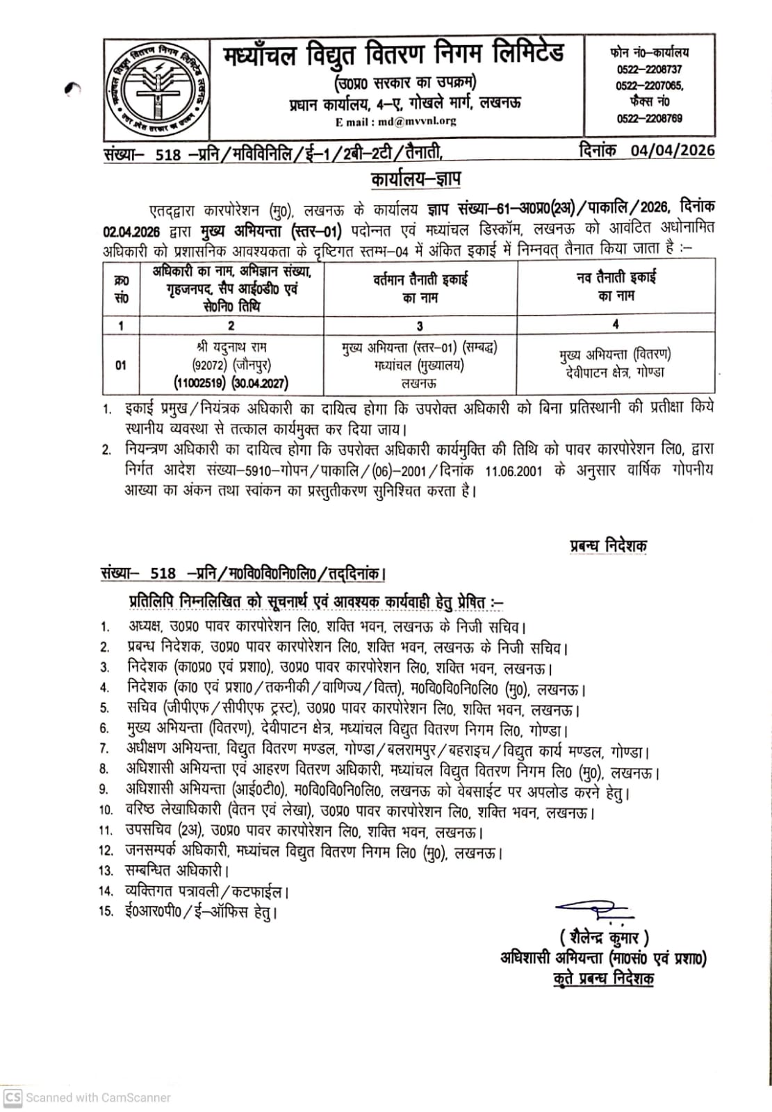 Regarding Work Allotment of EE (Shri Yogesh Singh Yadav)